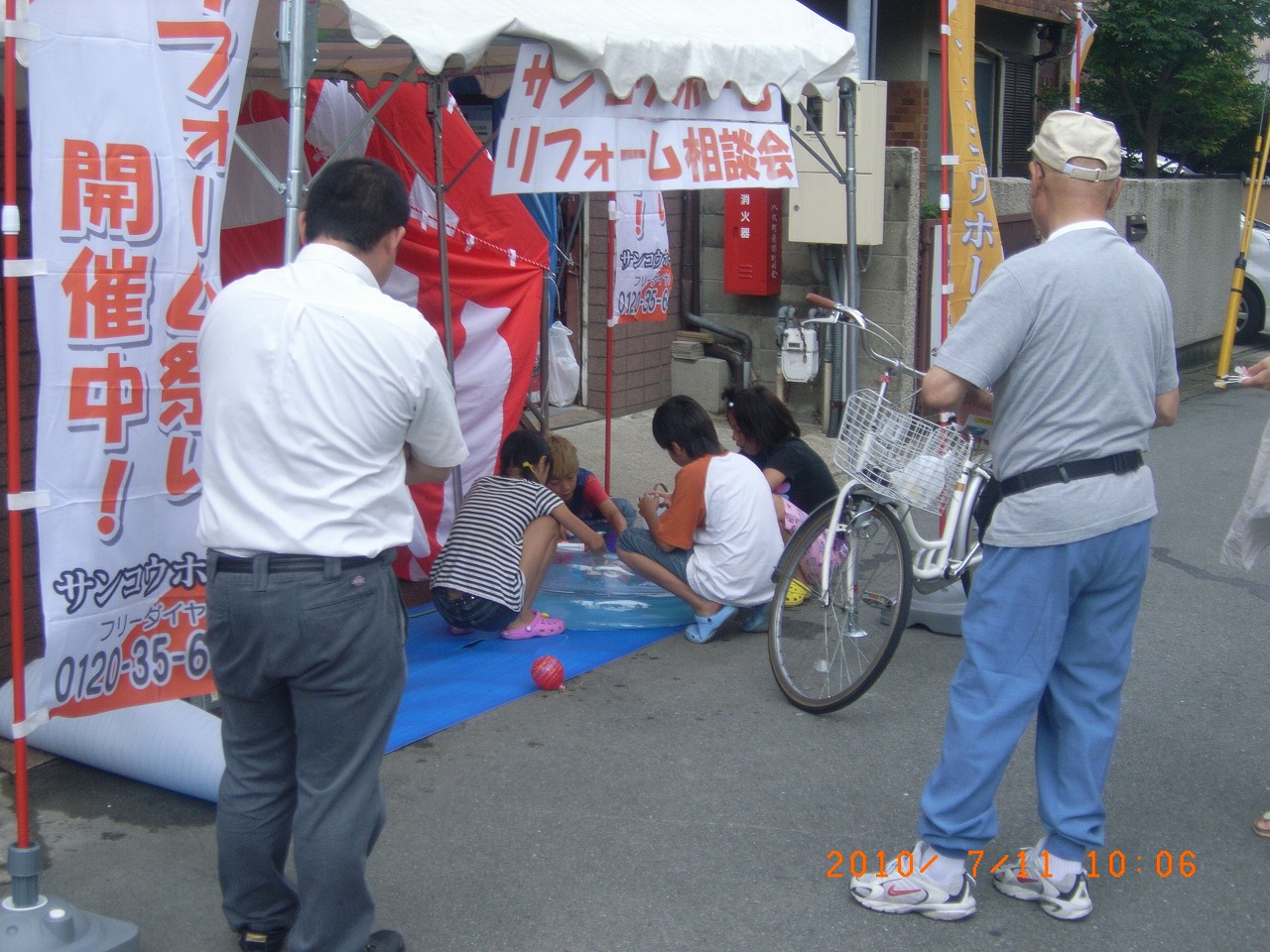 「夏のリフォーム祭り」2日目 2010年07月12日 現場中継ブログ 「夏のリフォーム祭り」2日目です。 「夏のリフォーム祭り」2日目です。 本日は雨にもかかわらず沢山のご来場があり、昨日同様 大盛況でした。 広告の品も多数のご予約を頂きました。 ありがとうございました。 好評につき、また、自社での企画を行いたいと考えています。 お楽しみに♪