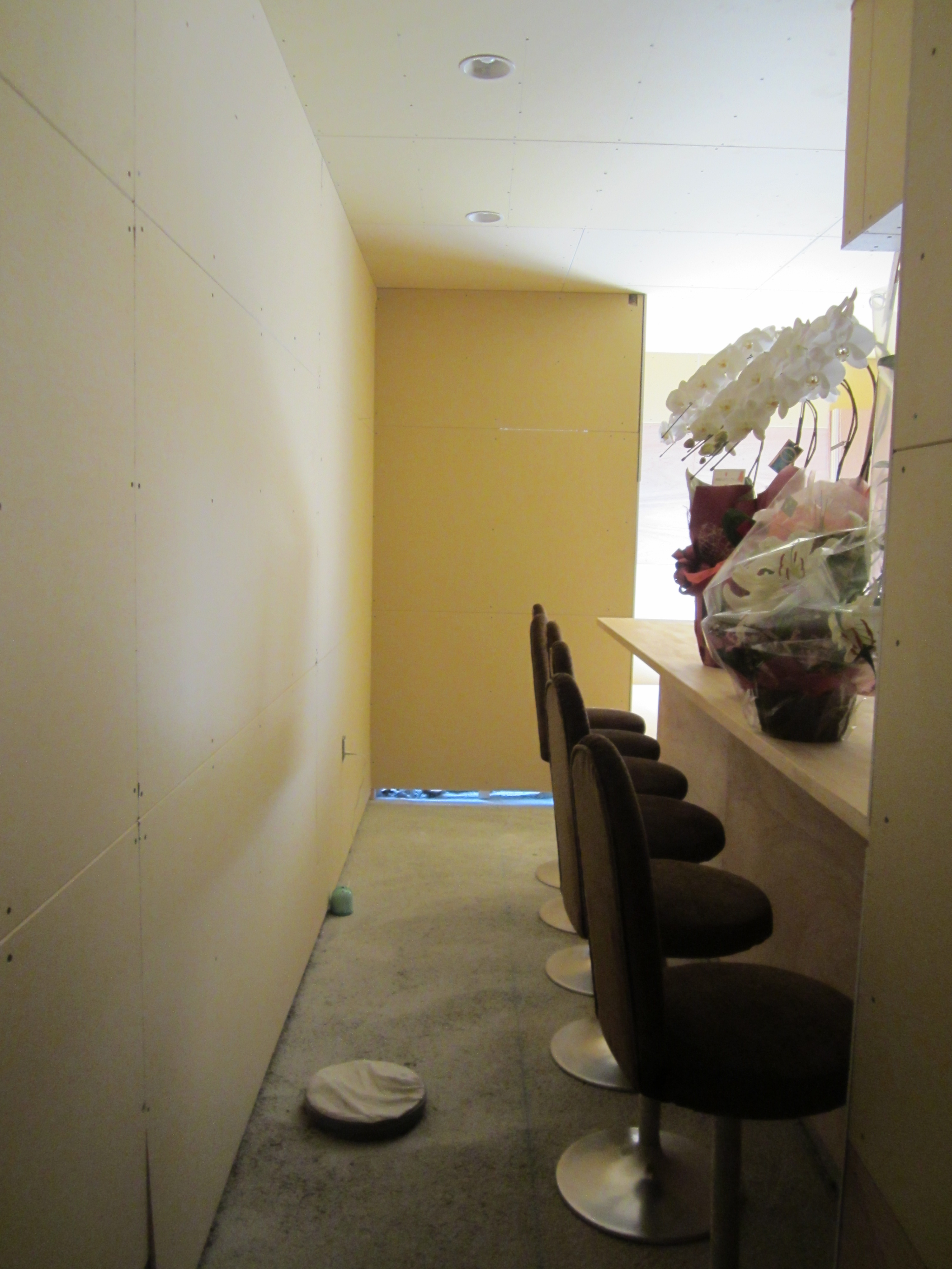 ボードが貼られ、カウンターの下地が施され少しずつお店の形が