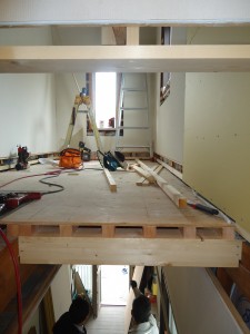 吹き抜けでデッドスペースになっていた箇所に床を敷きお部屋を1つ増築していきます(^^♪