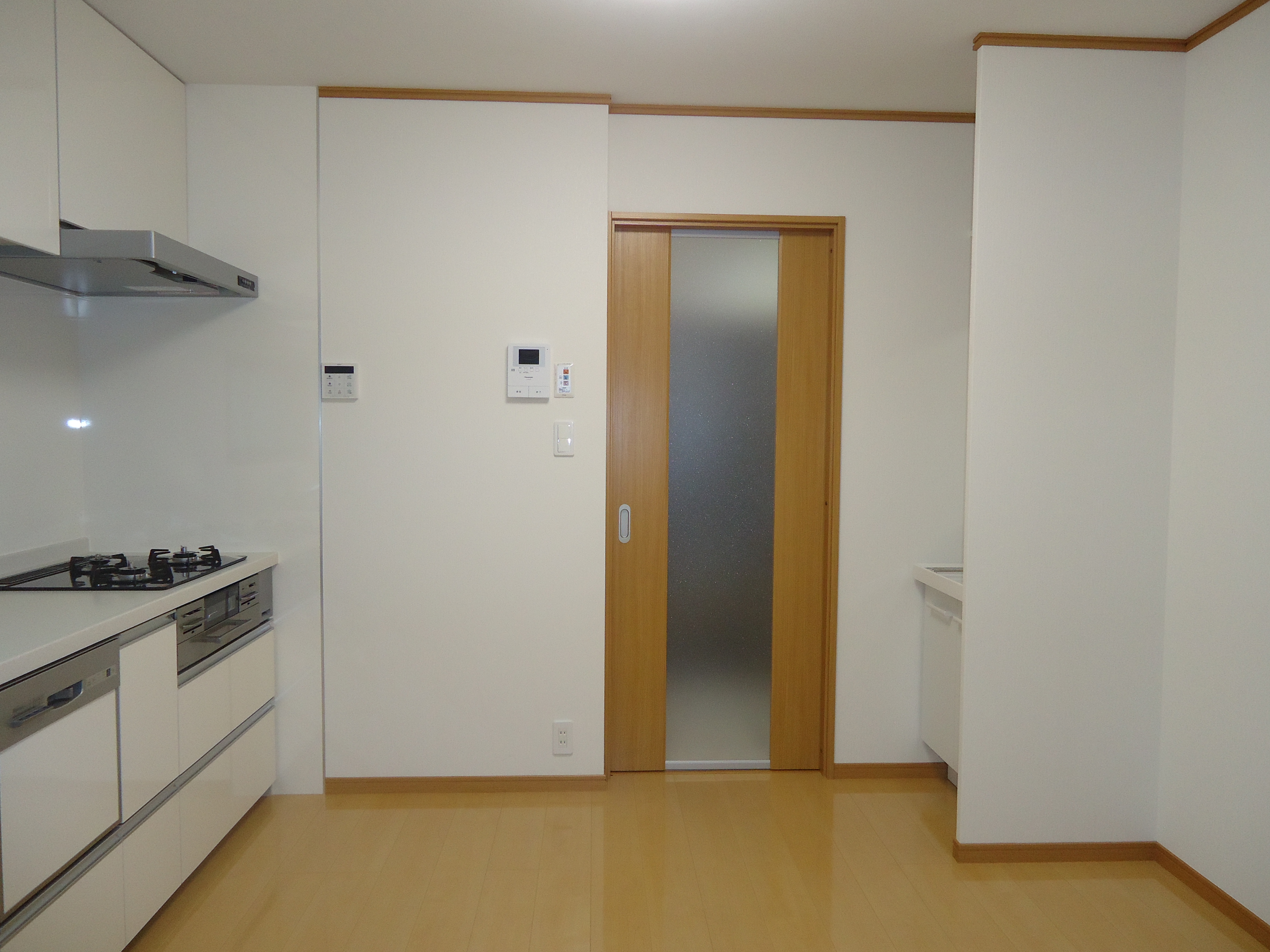 横のスペースにはカップボードと冷蔵庫の設置スペースです。