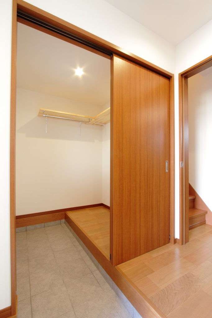 S様邸には赤ちゃんがおられるのでベビーカーごと奥まで入れる点、今後お子様の成長に合わせて増えるであろう
