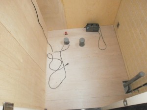 コンパネが貼られパテで下地調整されているのでそろそろクロス工事の様ですね。
