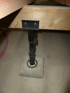 基礎の水平を保てるようになってから樹脂製の束を用い床組を支えます。