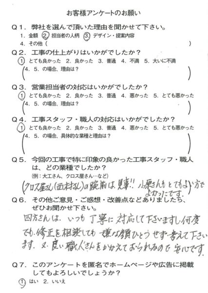 京都市伏見区N様よりアンケートのご回答を頂きました☆