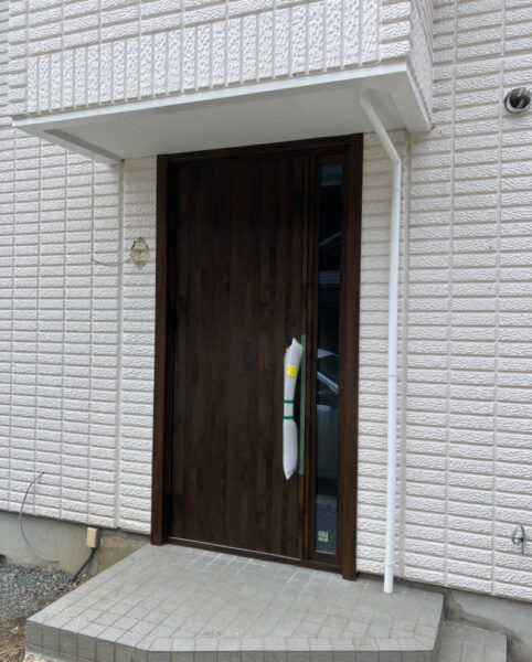 現在は外壁塗装が終わり玄関まわりにはタイルの素材感を出した、サイディング