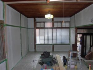 まずは下塗りです。既存の壁とガイナがひっつくように接着剤のような役割があります。