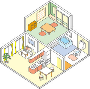 例えば1980年代に建てられたマンションの間取りの基本形は、できるだけ廊下を無くし部屋同士をふすまや開閉できる扉で仕切られています。