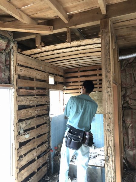 壁に入っている、古くなった以前の断熱材も全て処分して、新しくしていきます!