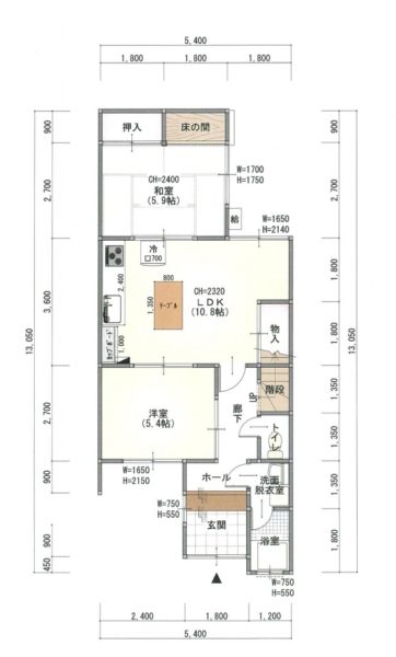 さてK様邸ですが、2階はさわらずに1階だけの全面改装工事となります。現在のお宅の間取り図はこんな感じです。