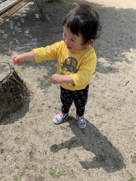 この写真はおばあちゃんのお家の近所の公園でシャボン玉をしたときのものです。