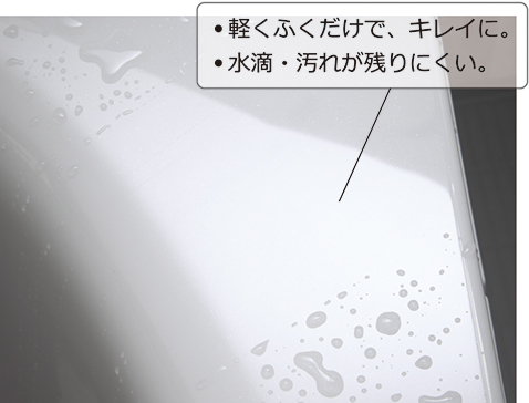 水アカや汚れがつきにくい『スゴピカ素材(有機ガラス系)』を使用しています。