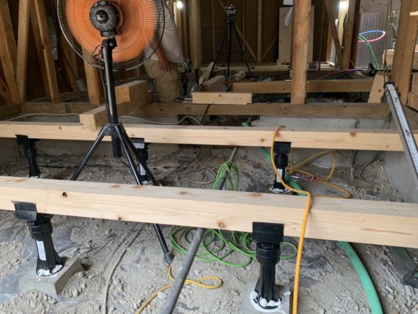 こちらも新しく大引きをいれて、プラ束で支えています。