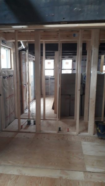下地の工事を進め図面の間取りに合わせて柱を建てていきます。
