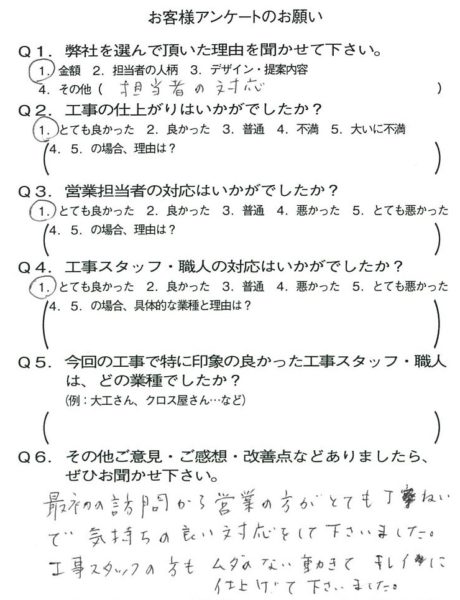 京都市山科区M様よりアンケートのご返信いただきました。