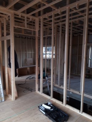 こちらは2階です。壁・天井・床には下地を施工しています。