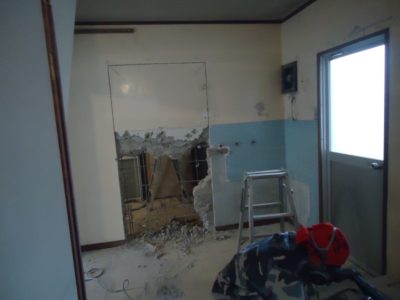 キッチンを撤去し、キッチンが取り付けられていた壁も