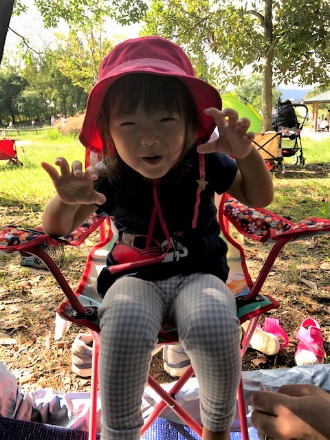 はなさん専用のいすに座って『ガオ~』ってしてはります。