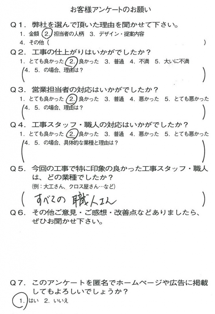 京都市山科区Y様よりアンケートのご返信いただきました。