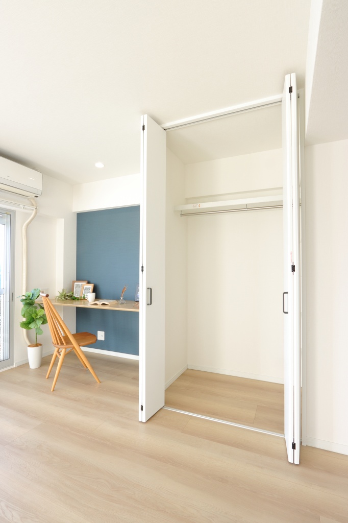 白を基調としたデザインの中に、ブルーのアクセントクロスを採用。