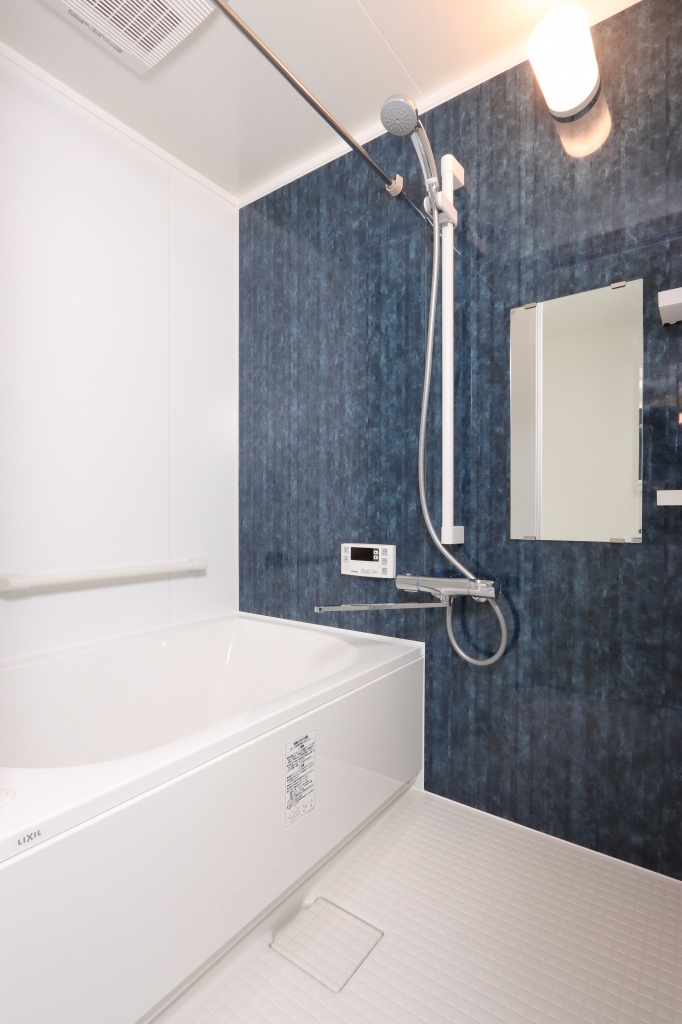 石目調のブルーのアクセントパネルがとてもシックでかっこいいですね!