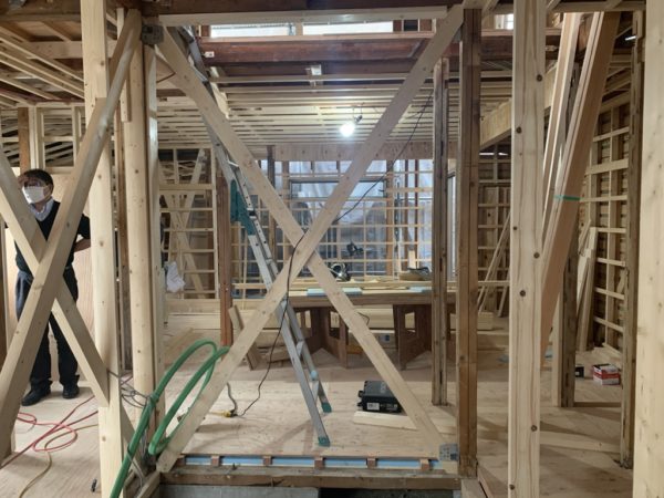 京都市左京区Y様邸1階・2階全面改修工事!大工工事が始まりました!壁・床・天井の下地の工事を行います!