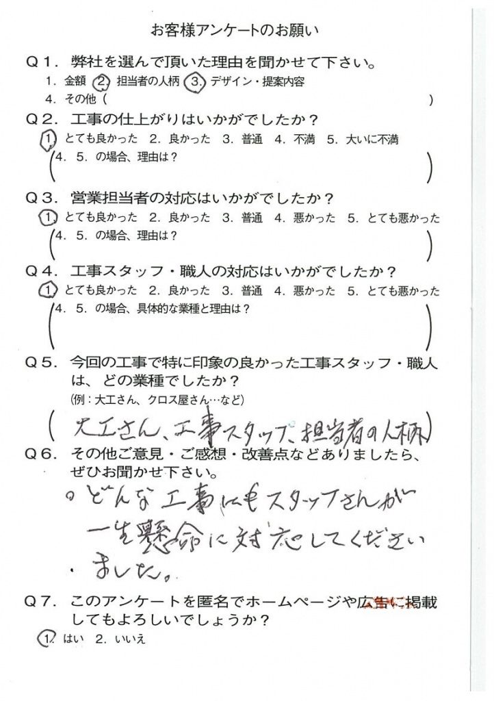 京都市山科区K様よりアンケートのご返信いただきました! 2021年10月24日 お客様の声 アンケート いつもご依頼いただきましてありがとうございます。 うれしいお言葉をいただきとても励みになります。 今後ともよろしくお願いいたします。 担当者:藤田 創一