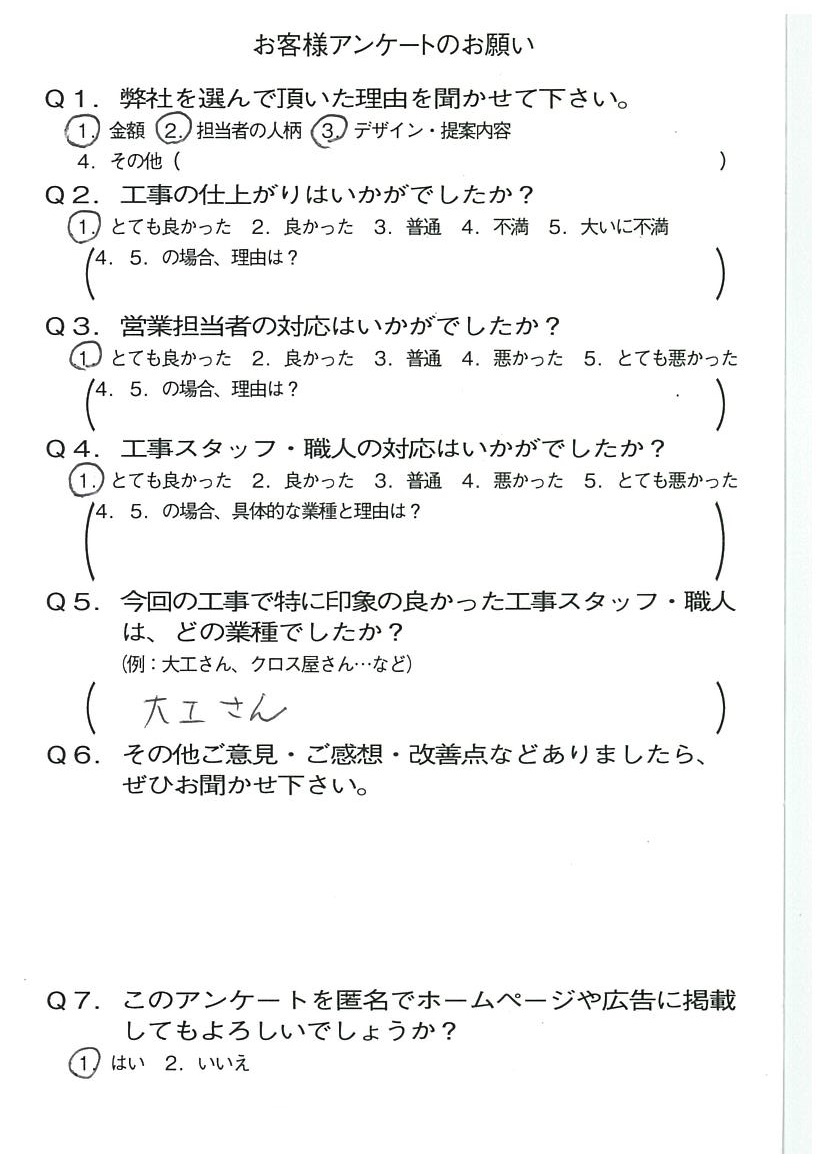 京都市左京区H様よりアンケートのご返信いただきました! 2022年08月31日 お客様の声 アンケート いつもご依頼いただきましてありがとうございます。 ご満足いただけて良かったです。 今後ともどうぞよろしくお願いいたします。 営業担当:石原良太、大西優衣