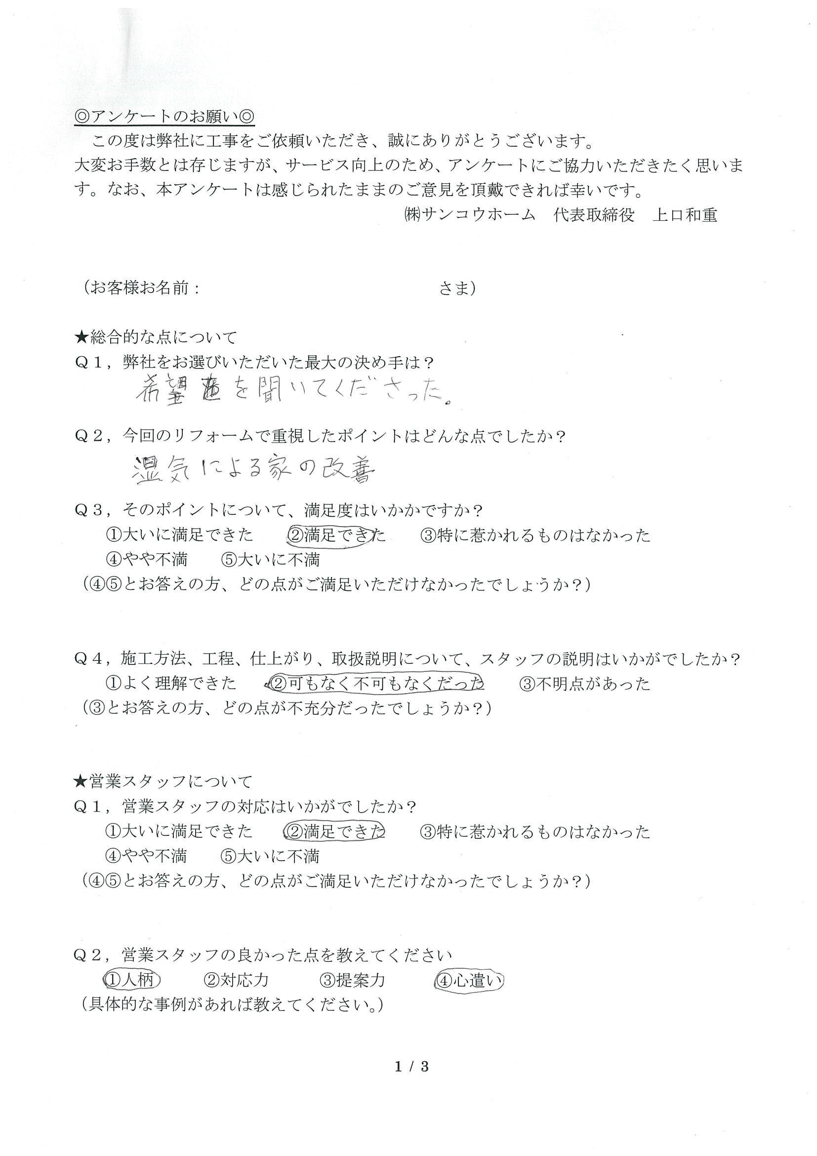 ご協力ありがとうございます。あなた様のご意見を成長の糧として、弊社スタッフ・職人一同