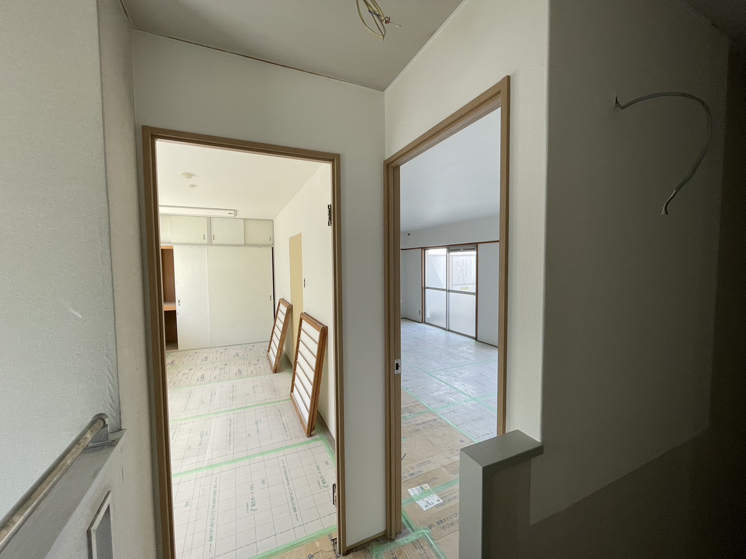 こちらの階は先にフローリングの施工が終わり養生をしてあります。