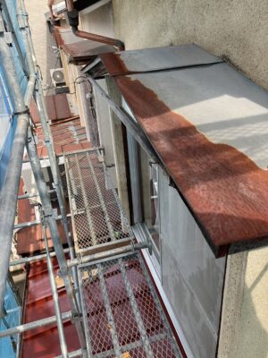 雨樋も錆があれば落とし、清掃の上ウレタン塗装をしていきます。