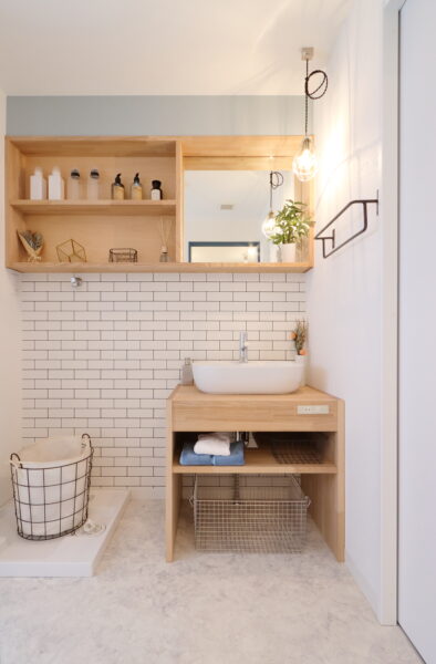 ③既製品と造作収納を組み合わせて北欧風洗面台に