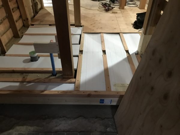 断熱材を敷き下地ができあがたら、この上にフローリングを