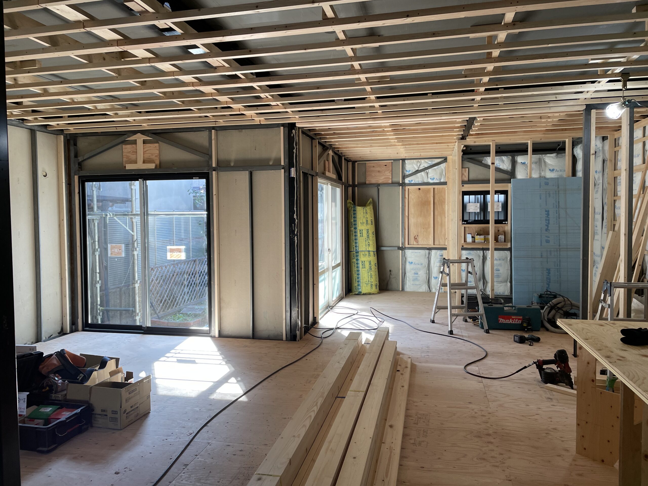 床にはすでに構造用合板も張られています。
