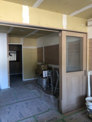 2020年11月18日 京都のリフォーム現場中継ブログ京都市山科区M様邸マンション改修工事~完成まじかです!大工工事完了!クロス工事に入りました!~パート②京都市山科区M様邸のマンション改修工事が 進んでいますのでご紹介します! 入口の枠やクローゼット扉の枠を取付け、 下地のボードも施工されています。 こちらの面の壁はコンパネ仕上げとなっていますね! テレビを壁かけにされた […] -