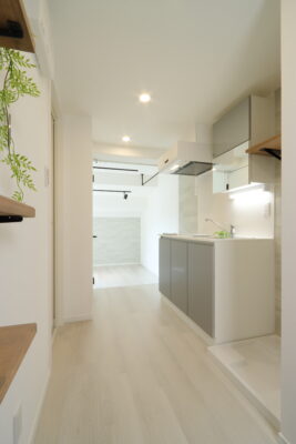 2023年8月4日 京都のリフォーム現場中継ブログ京都市左京区K様所有のマンションリノベーションが完成しました。3点ユニットバスをセパレートに!京都市左京区K様所有のマンションの一室をリノベーションしました。 グレイッシュカラーを取り入れた「モダンテイスト」になってます。 -