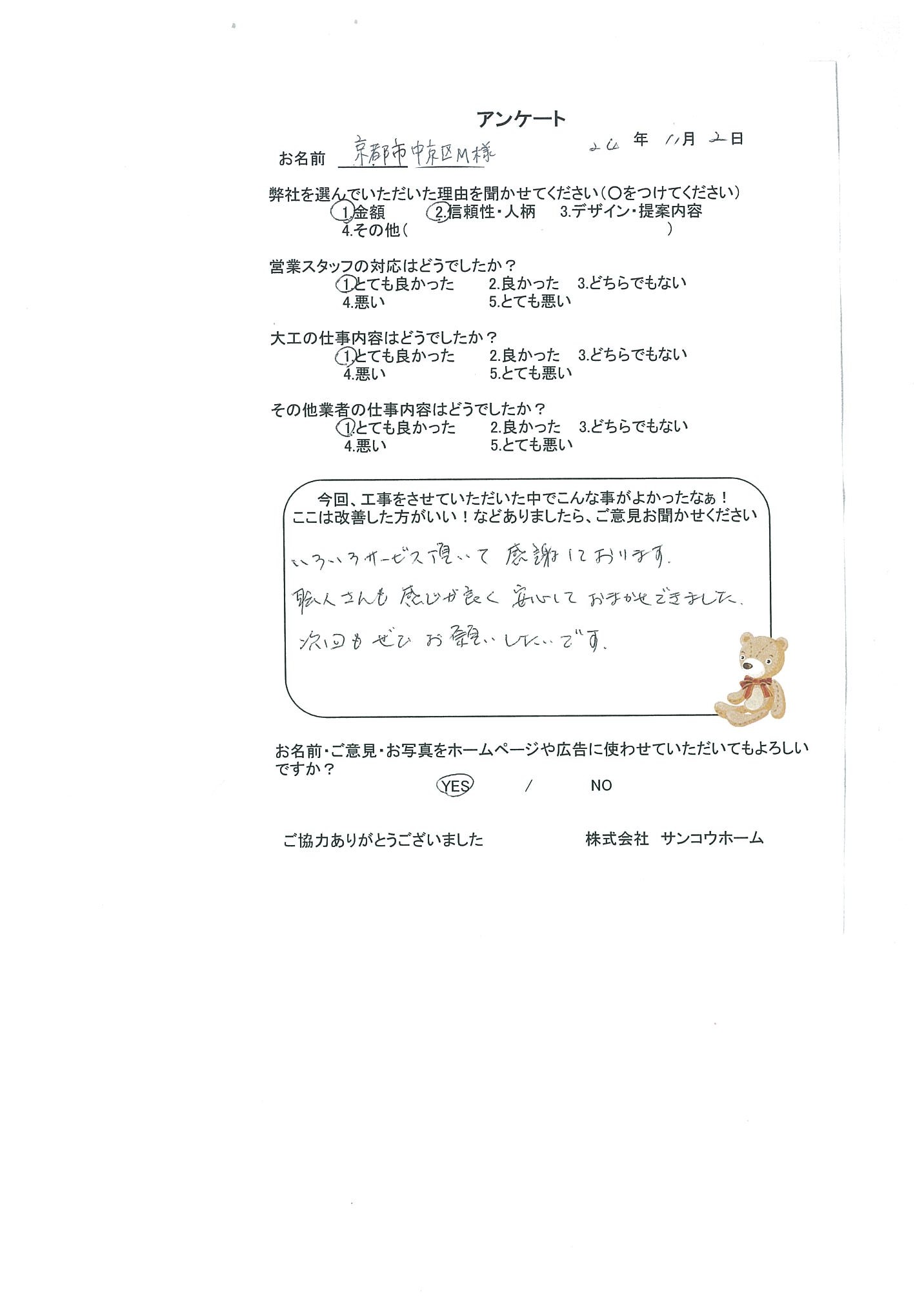 | 現場名 | 京都市中京区M様邸 |