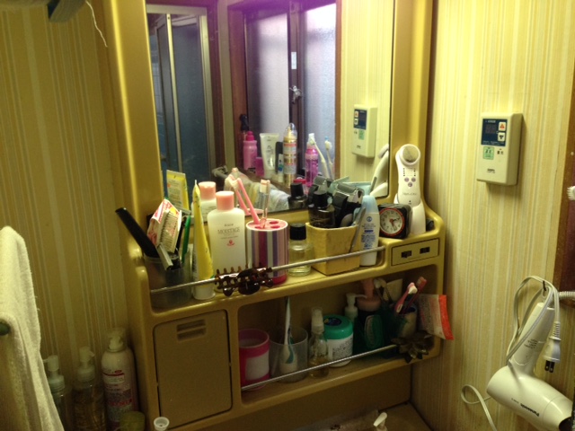 収納棚もないので、浴槽横の少しのスペースを収納としてお使いになられておられました。