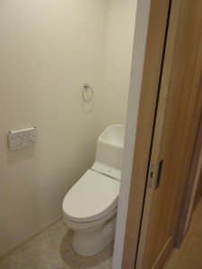 洗面室がなかったのでキッチンの横に洗面化粧台が・・・。階段下にはタイル貼りの和式トイレがありました。