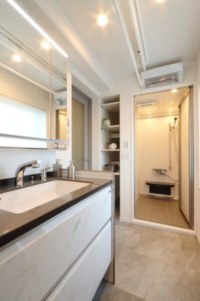 洗面化粧台は以前キッチンの横に置かれていた物を再設置しました。