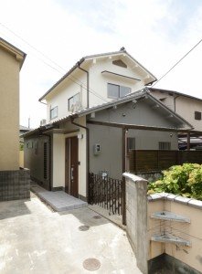 瓦葺き2階建て木造住宅です。こちらの外観を瓦屋根はそのままで少し“洋”を取り入れたモダンな仕上がりにしたいとのご要望でした。