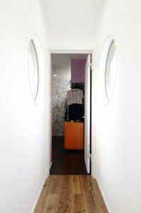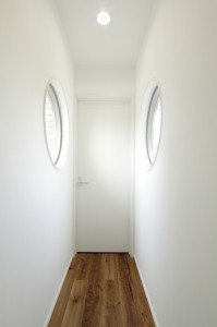 中二階の和室から2階へ上がると右手に白い引き戸が見えてきました。