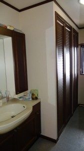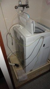 洗面脱衣室に収納庫がありました。その収納庫の中に洗濯機がおかれています。