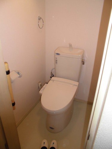 トイレにはウォシュレットがなく、タンクも別付けになっており