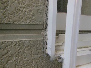 コーキングの劣化状況がこちら・・・。ひび割れしていて、この隙間から雨水が浸透し、家屋全体に被害を及ぼしていきます。