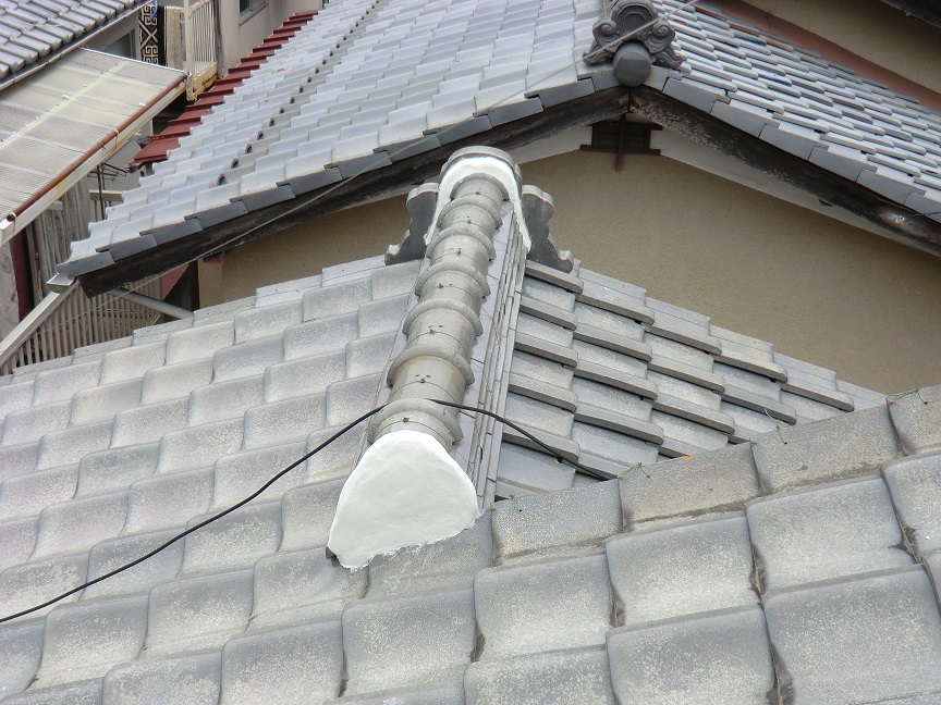 瓦屋根自体はきれいでしたが、漆喰が剥がれてしまっていました。これでは雨漏れの原因になってしまいます。