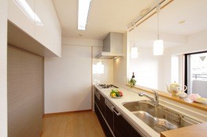 キッチンは以前も綺麗だったのですが、LDKを広くさせたいとの事で新しく致しました。