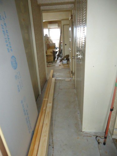写真は施工前の玄関を入ってすぐの廊下の様子です。