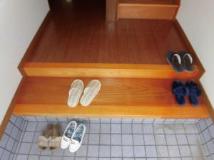 玄関正面にはガラスブロックを設置。