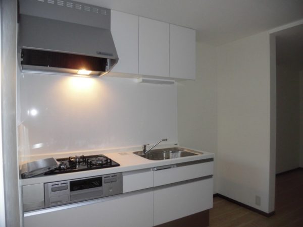 開き扉の古風なキッチン