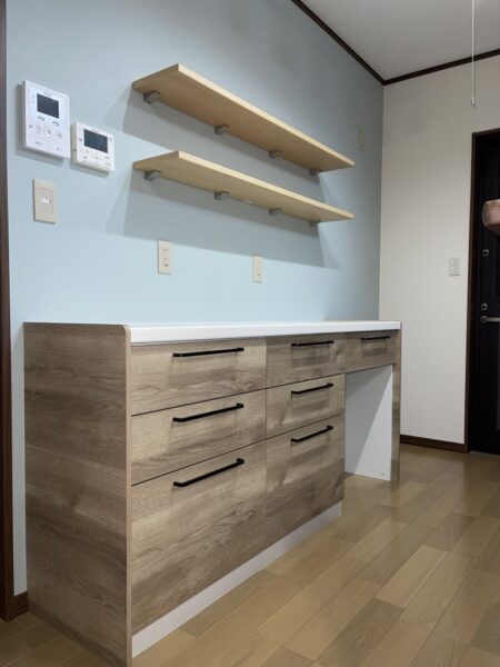 閉鎖的だったキッチンは壁などをすべて撤去しオープンキッチンへと入れ替えを行いました。